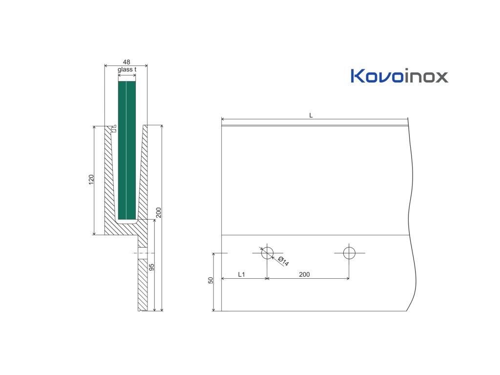 Hliníkový kotviaci profil Y pre sklo 12 -22 mm, dĺžka: 6000mm, bočné kotvenie, povrch prirodný hliník, bez prislušenstva
