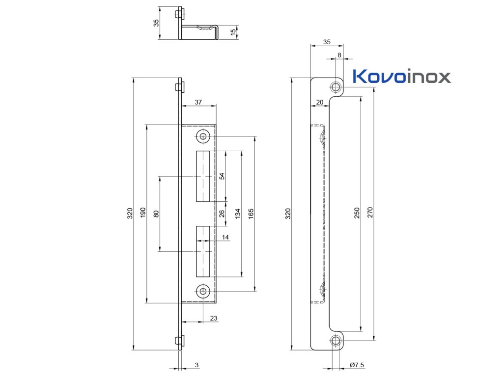 Doraz na bránu 320x40mm, oceľ, farba: matná čierna RAL9005