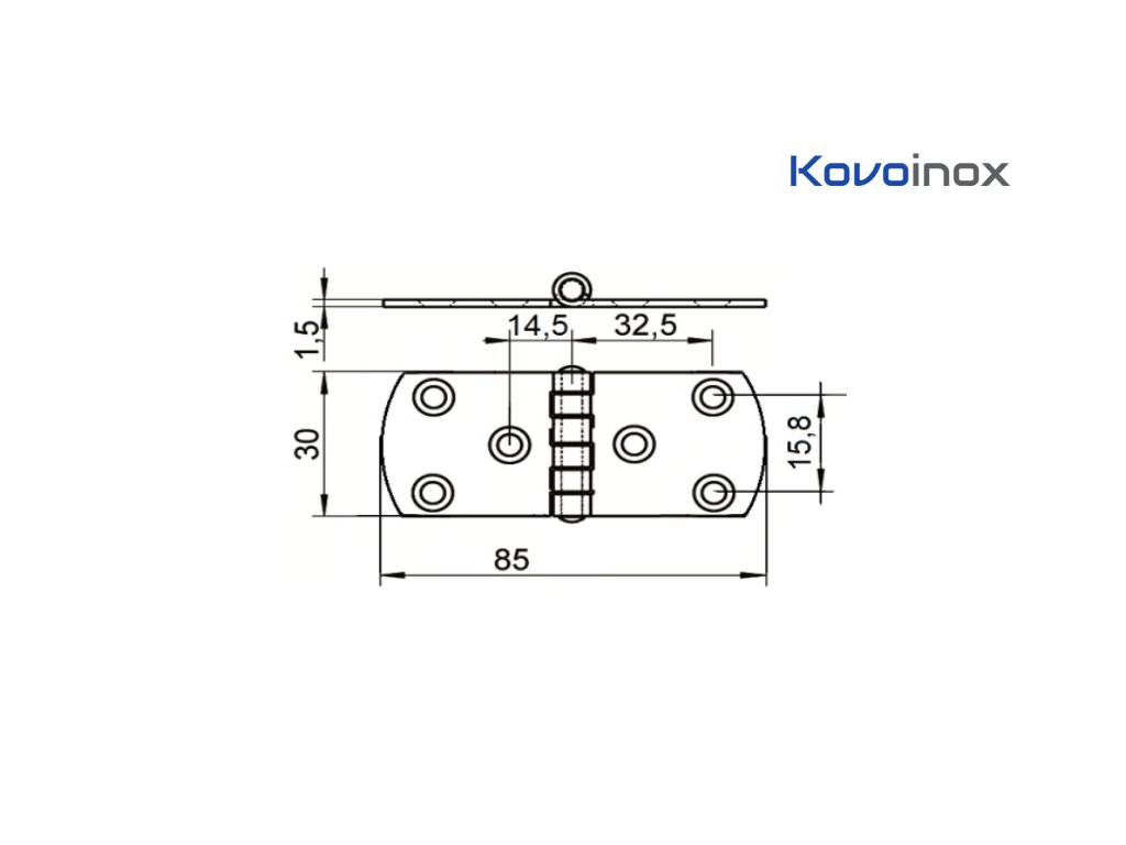 Nerezový pánt 85x30x1.5 mm, brúsený povrch K320/nerez AISI304
