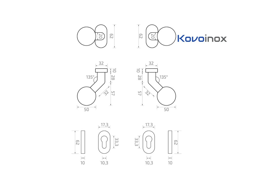 Set guľa + guľa vyosené pevné so spodnými rozetami, brúsený povrch K320/ nerez AISI304