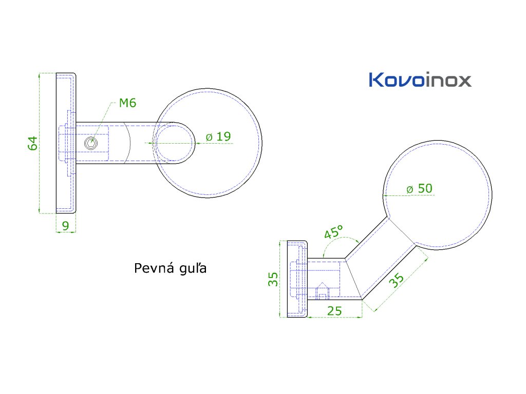 Guľa pevná s oválnou rozetou, bal.: 1 kus, brúsený povrch K320/nerez AISI304
