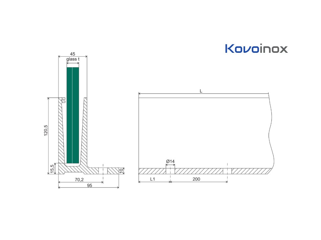 Hlinikový kotviaci L profil pre sklo 12-22mm, dĺžka: 2500 mm, vrchné kotvenie, povrch imitácia nerezu, bez prislušenstva