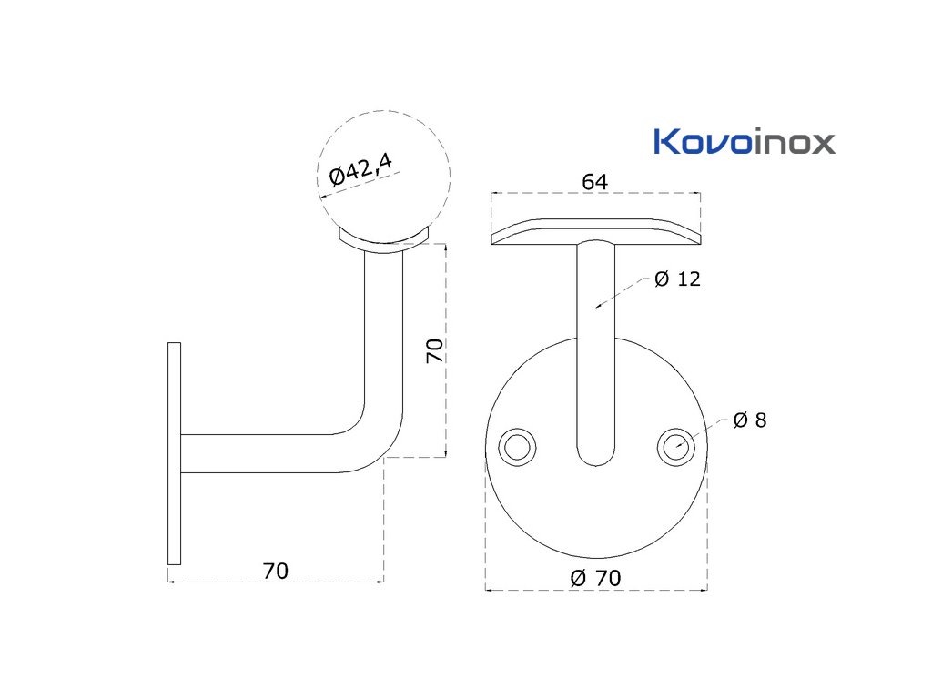 Držiak madla na stenu na trubku ø 42.4mm, brúsený povrch K320/nerez AISI304