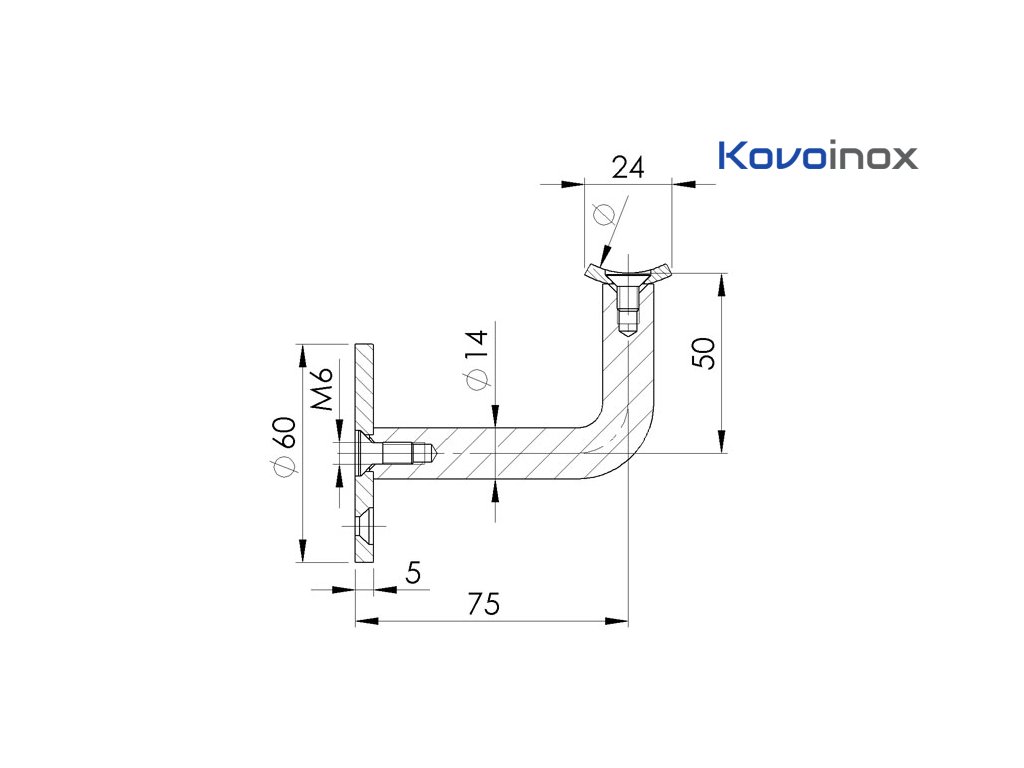 Držiak madla na stenu na trubku 42.4mm, brúsený povrch K320/ nerez AISI304