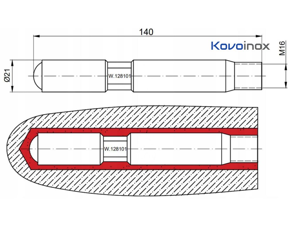 Kotviaca kapsula so závitom M16/ø21mm, pozikovaný povrch /oceľ