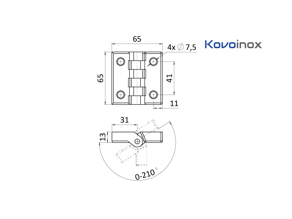 Plastový pánt/záves 65x65 mm, hrúbka 13mm