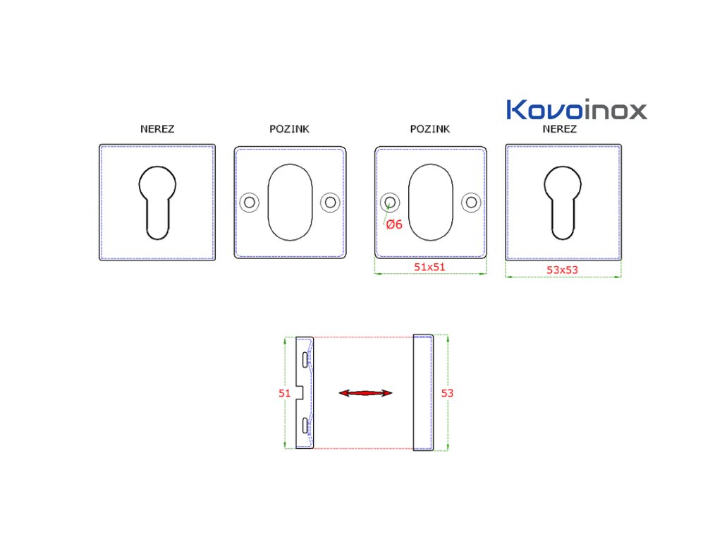 Štvorcová rozeta cylindrickú vložku (53x53mm) , brúsený povrch /nerez AISI304