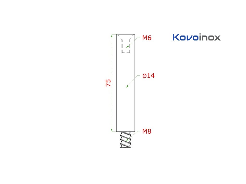 čap M8/M6 (ø 14mm, L: 75mm),brúsený povrch K320/nerez AISI304
