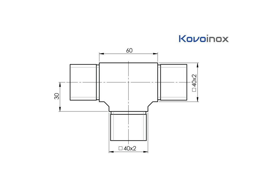 Spojka T-kus na jokel 40x40mm, brúsený povrch K320/AISI304
